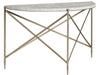 The Spier Console Table is a captivating blend of modern luxury and timeless elegance. Its sleek stone top, paired with a geometrically intricate metal base, creates a striking visual contrast. This sophisticated piece is a perfect addition to any entryway or living room, adding a touch of glamour and sophistication.