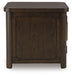 If casual contemporary style is your thing, then you'll love this end table. Its thick tabletop, softly rounded corners and rich wood-tone finish lend a soothing sensibility. A double-door cabinet and an adjustable shelf offer storage options to help keep everything well organized and out of sight. Sleek and smart, this piece is a fresh take on cool for the modern home.
