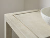 In a serene neutral color palette and crafted in a tactile lacquered burlap finish with a subtle metal inlay with an alluring sparkle, the Cascade table offers cubby-like storage and display areas to clear your clutter and infuse your space with tranquility. At only 16 inches deep, this piece will fit in tight spaces. One fixed shelf.