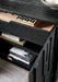 Pine Veneers in a Charred Black finish featuring a Japanese technique to achieve the look of burnt wood create a truly unique piece in the Chapman Accent Chest. With a rustic and casual yet sophisticated design, the chest has two doors with soft-close hinges and touch latches, one adjustable wood shelf, one drawer behind the doors and is media-ready with a ventilated back panel.