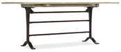With a chic French industrial look, you can use this metal and wood console as a sofa table, desk and even for extra dining when guests arrive. Two leaves on either side flip open, and pull-out supports brace the leaves when open. The soft Flaky White finish over Poplar and Hardwood Solids with Maple Veneers contrasts with the Aged Iron base.