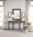 Make room for style in your tightest spaces with the 3-drawer Ciao Bella Narrow Console in a Speckled Gray finish that looks like it has aged through generations. At only 14 inches deep and 68 inches wide, the console packs fashion and function into small spaces. The Aged Bronze Metal Stretcher makes this farmhouse-inspired piece fresh and updated for today's interiors.