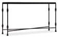 With a tribal design flair, the eclectic Metal-Wood Console combines natural materials, with a White Travertine Stone top with a screen-printed design and a forged black metal base.