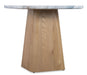 The Hudson Nesting Table offers a combination of natural oak wood and quartz stone. The base is complemented by the quartz stone top, which features natural shades. Its square pedestal design allows it to be used on its own or paired with the low nesting table from the same collection for added versatility and style.