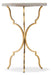 With its slender shaped iron legs in a gold finish and organic Travertine top and petite footprint, this metal-and-natural-stone accent table is the perfect piece of jewelry for your room.