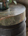 With a pottery-like feel, the Valor Accent Table is crafted of Mango Solids in a black finish with a Green Forest Marble top. At 17 inches round, it has a convenient, compact footprint.