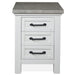 - Three drawers are constructed with dovetail joinery and ball-bearing extension guides