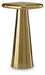 This accent table is a monochromatic, metallic take on sofa-side function. Dressed up in a goldtone finish, it stylishly keeps entertainment essentials and refreshments close. Need a stand to showcase decor? This table acts as a luxe landing place for an elegant houseplant or a statement-making accent. Contemporary glam has never looked so good.