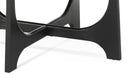 The Dunnigan Cocktail Table features modern styling with an organic architectural inspired design. The flat-cut oak wood is finished in a black matte stain. The base design features curving on the inside and straight on the outside for a unique look. Also included are adjustable floor levelers for an even balance.