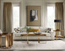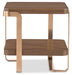 The Eleana Table is a stylish blend of warm Light Caramel walnut veneers and a sleek plated metal base. With its softly rounded rectangular design and one fixed wood shelf, it offers both functionality and an elevated aesthetic, making it a perfect accent piece for transitional interiors.