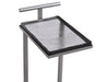 - Contemporary T-frame in a sleek silver metal finish