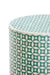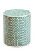 Finch Scatter Table is a round scatter table with a diamond patterning alternating natural bone and seafoam resin,