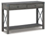 Open the door to modern farmhouse style with this console table. The beautiful woodgrain look and classic crossbuck metal accents are a cool touch, while the lower shelf provides surface space for fashionable home accessories. A pair of smooth-gliding drawers is the answer to the daily, where-are-my-keys question.