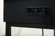 | Details | Made with engineered wood, glass and metal, Metal frame with black finish, Polyester fabric in black, Fixed lower shelf, Glass tabletop with wireless charging and touch-button controls, Two 3" full-range speakers; two 1" tweeter speakers; 5.25” subwoofer, Wireless connectivity; aux audio input; MP3 port, USB-A and USB-C charging ports, LED light effect on top, Power cord included; UL Listed | |