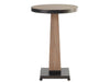 The Canyon Spot Table is a versatile and stylish piece of furniture that can hold a single drink or a small decorative accent. Its metal base and inset wood log top create a striking visual contrast, while the varying wood hues add depth and dimension. This table is a unique and eye-catching addition to any living room or bedroom.