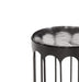 - Constructed with a thick, round cast glass top and a matte black iron base