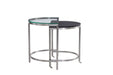 Introducing the Hensley End Table, a true embodiment of glam-inspired design. This end table offers a two-piece nesting table set, featuring half-oval shaped frames with a satin-nickel finish. The taller table is adorned with a tempered, clear glass top, while the smaller nesting table showcases a stunning black marble top. Both tables come equipped with casters for convenient mobility. Trust in the quality and style of the Hensley End Table to enhance your home with elegance and practicality.