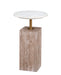 The Holt Accent Table seamlessly blends modern farmhouse styling with timeless elegance. Crafted with a solid mango base in a soothing driftwood finish and adorned with a suspended white marble top, it adds sophistication to your space.
