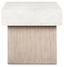 This end table is proof positive that sleek, contemporary styling can suit busy lifestyles. Its substantial cement-look top is perched on a textural gray base for an elevated mixed-material look. Don’t want to sacrifice function for fashionable flair? The table's MEGA-TUFF® melamine provides must-have durability and cleanability, resisting stains, scratches, heat and water.