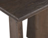 The Lasso End Table features a modern organic inspired design. The thick, soft-edged table top sits on a unique, offset tapered base design. This end table is constructed with solid mango wood that's been sandblasted for texture with a deep, antiqued brown stain that highlights the features of the natural wood. Look for other items in the Lasso Collection to complete the set.