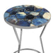 The Lauer Accent Table is perfectly scaled for a chairside table to display flowers and hold drinks. Features a blue agate stone top supported by a thin, silver stainless base.