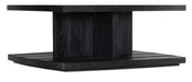 With the aura of a rustic mountain cottage, the Linville Falls Cocktail Table is crafted of Pine Veneers with a plinth base and a square shape with rounded edges. The table is finished in Shadow, a charred black achieved through Shou Sugi Ban, a Japanese technique that creates a look resembling burnt wood.