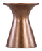 In a hand-forged, craftsman-like design, the Barron Accent Table is offered in an hourglass shape and textured brown finish with distressing and a raised edge on the top. While large in style, it is a compact 20 inches round.