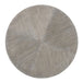 Futuristic and fashion-forward, the round Guilded Cocktail Table features a stepped design with contrasting silver leaf insets. It is crafted of Figured Primavera Veneers with a gray finish and silver leaf accents on the stepped insets for an artistic designer look.