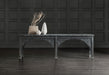 Medieval meets metropolitan in this modern console with classical and vintage design elements. In a convenient rectangle shape, the table is crafted of rustic pine veneers with a dark charcoal finish.