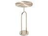 The Fawn Martini Table exudes glamour and luxury with its lustrous Champagne Gold metal finish. Featuring a succinct round top poised elegantly atop a slender, curvaceously cool base, this table brings a radiant shine and sophisticated flair to any setting, encapsulating the essence of upscale charm.