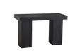 The Padula Console Table exudes modern sophistication with its minimalist design and clean lines. Crafted from solid wood and mango veneers in a sleek matte black finish, this table adds a touch of elegance to any space. Its sturdy construction and matte black surface make it both stylish and functional, while its double pillar base adds an extra element of interest to its design. Perfect for bringing modern charm to any space.