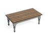 Transform your living room into a cozy cottage retreat with the Plymouth rectangular coffee table. A weathered graywash finish, medium brown planked top and turned legs create a charming vintage vibe, while the large tabletop provides ample area to place drinks and décor.