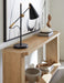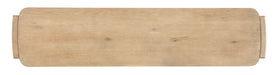 The Retreat Console Table has a tranquil personality with a modern twist. Simple, clean lines are in a rectangle shape with rounded corners and interlocking block-style legs. Crafted of Oak Veneers, it is finished in the sand-colored Dune, transparent by design to reveal the unique grain patterns of the wood veneer. One lower fixed shelf.