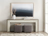 In a crisp two-tone finish combining weathered gray with a textured washed gray color, the Serenity Skipper Table brings the organic textures of cottage waterfront living to your space. Crafted of Oak Veneers and Resin. I