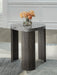 Striking contemporary form, meet can’t-miss function. This end table pairs the look of faux gray marble with a weathered gray wood grain for a simply chic approach to monochromatic style. Perfect as a perch for remotes, a lamp or morning coffee, it’s a luxe take on everyday living.