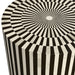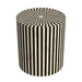 The Teague Accent Table features a cylinder shape with black and white bone vertical striping. Natural bone is a product of nature and is completely unique. The natural material is subject to variations in characteristics.