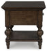 For those who appreciate a time-honored aesthetic with understated elegance, this end table brings home a timeless look. Its rich brown walnut finish merges seamlessly with a profiled top and traditional baluster turned legs for a richly classic appeal. And did we mention there's a lower shelf to display your whatnots?