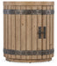 Capture the essence of the Napa Valley lifestyle with the Vineyard Row Wine Barrell End Table. The 22-inch-round table is inspired by a rustic wine barrel and has two doors with soft-close hinges, magnetic catches and one adjustable wood shelf behind doors, along with rustic, hammered accents. Crafted of Pecky Hickory Veneers, it is finished in Sonoma, a light-and-airy color reminiscent of the crisp white wines of the Sonoma region.
