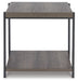 | Details | Includes coffee table and 2 end tables, Made with MDF substrate, decorative paper laminate and metal, Laminate features a replicated wood grain with a weathered gray coloration, Metal frame with gunmetal powder coat finish, Open storage shelf, Coffee table with casters for easy mobility, Assembly required | |