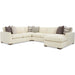 This casual modern sectional features architectural shaping and low, deep seating, designed to be both comfortable and on-trend. It's generous scale and Blend Down Cloud cushioning provide plush, seating for the whole family. French seaming and loose box border back pillows. Also available are the matching sofa, loveseat, chair 1/2, and ottoman.
