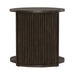 With its sleek lines and modern design, the City View chairside table is a statement of impeccable taste and refined sophistication. Crafted with excellence using Rubberwood solids and Quartered White Oak veneers, this table features a Coffee Bean finish. At its core, the chairside table features softly curved reeded end panels, adding a touch of elegance and refinement to its aesthetic. These subtle details lend a sense of texture and depth to the table, creating visual interest without overwhelming the space. An open bottom shelf provides ample space for storage and display, allowing you to showcase your favorite books, decorative items, or personal treasures with ease. Whether you're organizing magazines, displaying a potted plant, or storing remote controls, this shelf offers endless possibilities for customization and personalization. With its compact size and versatile design, the City View chairside table is the perfect companion for any seating arrangement. Whether placed next to a sofa, armchair, or even in a corner as a standalone accent piece, it adds both style and functionality to any room.