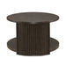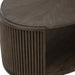 With its sleek lines and modern design, the City View oval cocktail table is a statement of impeccable taste and refined sophistication. Crafted with excellence using Rubberwood solids and Quartered White Oak veneers, this table features a Coffee Bean finish. At the heart of this table lies its distinctive oval-shaped top, a testament to its unique design aesthetic. Softly curved reeded end panels frame the top, adding a touch of texture and visual interest while maintaining a sense of understated elegance. But it's not just about looks—the functionality of this cocktail table is equally impressive. An open bottom shelf provides ample space for storage and display, allowing you to showcase your favorite books, decorative items, or personal treasures with ease. And for added convenience, casters ensure easy mobility whenever needed, allowing you to effortlessly move the table to accommodate your changing needs or preferences. Whether you're entertaining guests or simply rearranging your living space, this table makes it easy to create the perfect layout every time. With its blend of contemporary styling and thoughtful features, the City View oval cocktail table is more than just a piece of furniture—it's a reflection of your unique sense of style and impeccable taste. Whether gracing your living room, den, or entertainment area, it promises to elevate any space with its timeless elegance and undeniable charm.