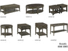 The Nicolette collection includes a rectangular cocktail table, oval cocktail table, bunching cocktail table, oval end table, rectangular end table, rectangular chairside table, and sofa table.