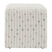Serving as both a standalone accent piece or functional seating, the Joie ottoman is sure to add comfort and style to your space. Covered in an ultra plush white chenille stripe over a flax ground with a fun dot of sea blue.