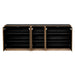 Blending natural materials with the warmth of teak wood, this media console features a sleek concrete top, a solid mahogany frame, and textured teak skin door fronts, all finished in a warm, natural tone. Its sturdy design provides ample storage, making it a functional yet stylish centerpiece for your living area.