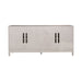 Infused with emotion, the Kinsley four door accent cabinet is sure to turn heads. Crafted with excellence using rubberwood solids with split heart white oak veneers, this piece features a Washed Taupe and Silver Champagne finish. The unique decorative pattern resin door fronts are the showstopper. Behind each set of doors is a large adjustable shelf and wire management provisions to help keep things looking neat and tidy. European soft close door hinges and magnetic door catches make this a piece to last. Transform the ordinary into the extraordinary with the Kinsley four door accent cabinet.
