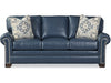 Casual sophistication comes to life in this updated classic leather sofa. Nail heads trim the arm panels and accent the pleated rolled arms- set at the perfect height for a good nap! Three plush Blend Down Coil seat cushions and three attached backs provide a plush, comfortable place to relax. Tapered block legs offer a modern touch to this simple, but refined look. Also available are the matching loveseat, chair and ottoman. Optional nail finishes available. This style is standard with one pair of Blend Down toss pillows in your choice of fabric. Also available without nail head trim.