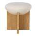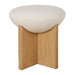 The Lainie accent stool is a minimalist statement piece, featuring a plush seat that is cradled by a contoured base in naturally finished oak veneer. Upholstered in a textured white boucle with a toxin-free, eco friendly treatment to help resist water based stains.