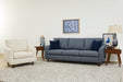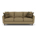 Retro Flair Add some mid-century modern chic to your living spaces with the Mia sofa. Rounded corners, sloped flare arms and tapered legs provide a classic retro feel, while soft lines and wide, plush boxed seat cushions invite you and your guests to unwind in total comfort. Mid-century modern style with soft curves Round tapered legs in a rich Florentine finish Removable and reversible seat and back cushions allow you to flip and rotate them for even wear Includes two accent pillows in your choice of fabric to match your personal style The patented Blue Steel Spring in the seat provides unmatched support and lasting comfort Sustainably sourced wood frame delivers exceptional durability Upholstered in your choice of fabric, including those with performance and sustainability characteristics Handcrafted in North America Model Number: 5727-31 Dimensions 37H x 88W x 36L