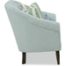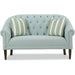 An elegant standout, this lovely piece from the Paula Deen Home collection features classic details such as a button tufted back, panel arms, tall tapered legs, and a barrel shape to wrap you in comfort. It's at home in living spaces, bedrooms, hallways or even at dining tables. Accented with Blend Down toss pillows.